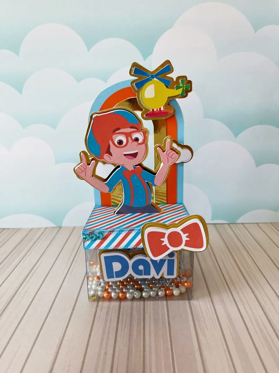 Este produto inclui arquivos nos formatos Studio, PNG e PDF, prontos para uso em máquinas de corte como Silhouette ou para impressão manual. Com elementos gráficos do Blippi, o kit permite criar caixinhas, toppers, tags e enfeites personalizados para deixar a festa ainda mais especial.