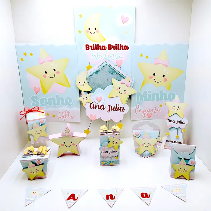 Se você deseja uma festa linda, criativa e personalizada, este Aniversario Tema Brilha Brilha Estrelinha é exatamente o que você procura. Com ele, é possível criar centros de mesa encantadores, lembrancinhas originais e decorações temáticas de forma prática e acessível.