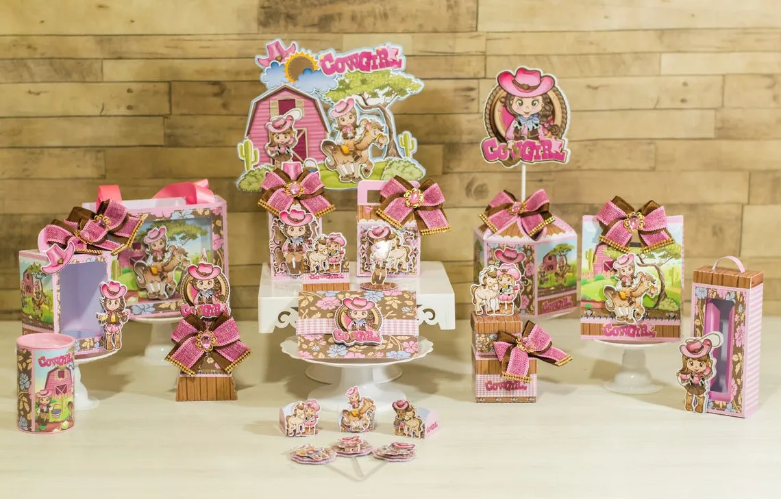 🎉 Aniversario Tema Cowgirl Studio e Pdf – Centro de Mesa, Decoração de Festa e Lembrancinhas de Aniversário