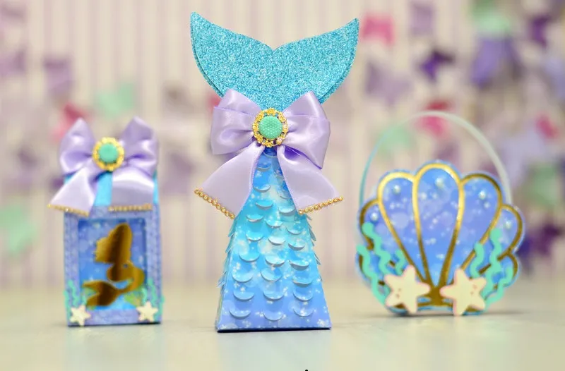 Elementos decorativos do tema sereia, incluindo cauda, conchas e acessórios do fundo do mar;