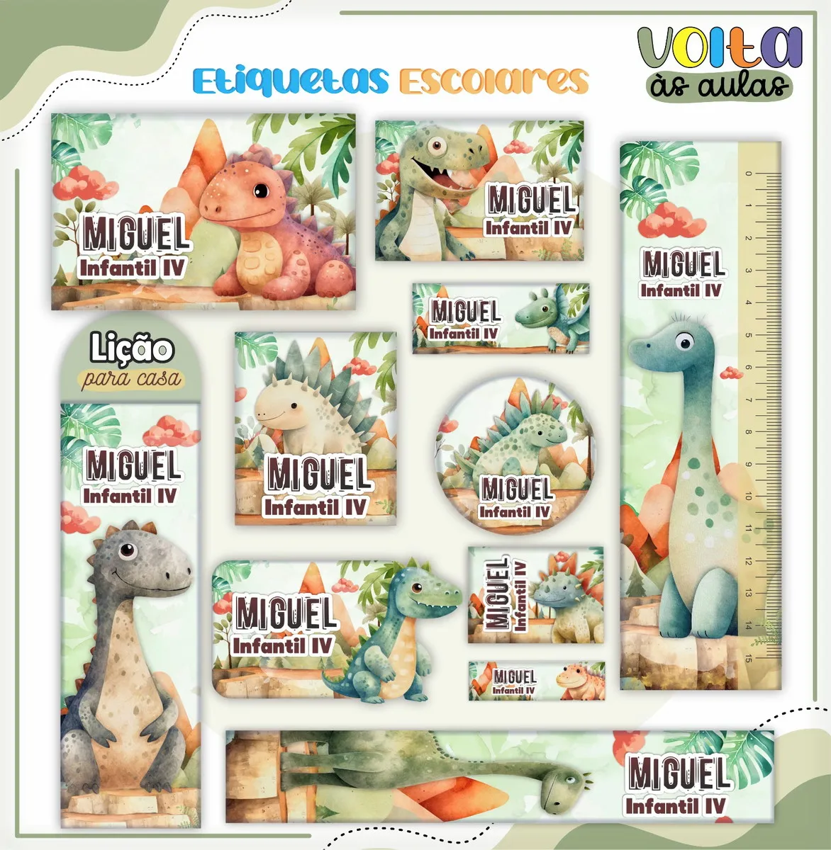 📌 Conclusão Arquivo Etiqueta Escolar Dinossauros