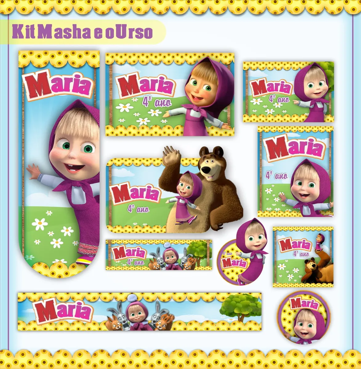 ✨ O Que Está Incluído no Produto? Arquivo Etiqueta Escolar Masha eo Urso