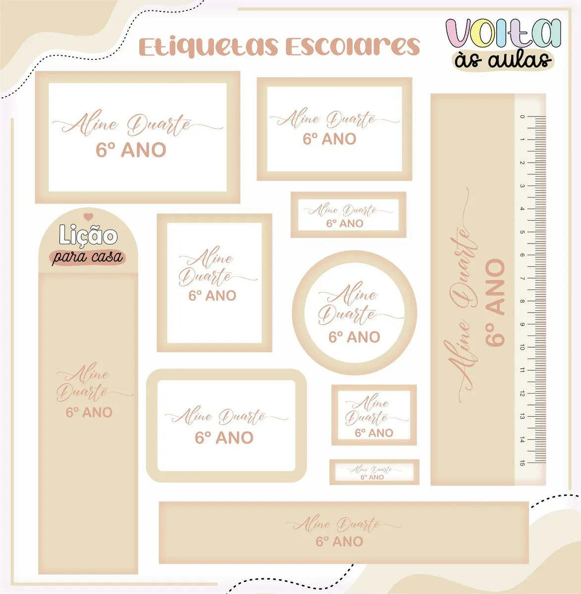 ✨ O Que Está Incluído no Produto? Arquivo Etiqueta Escolar Neutro Bege
