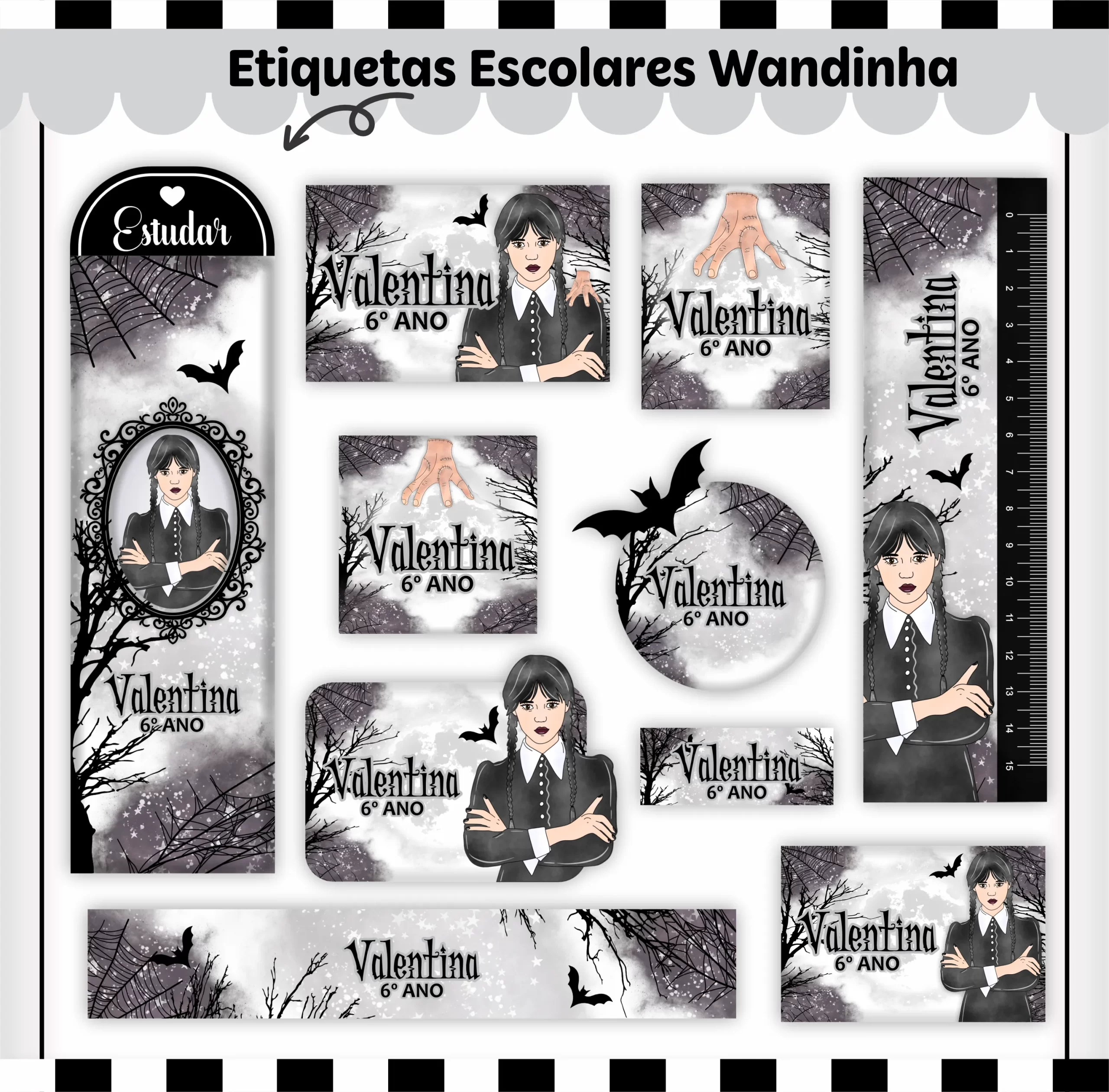 📌 Conclusão Arquivo Etiqueta Escolar Wandinha