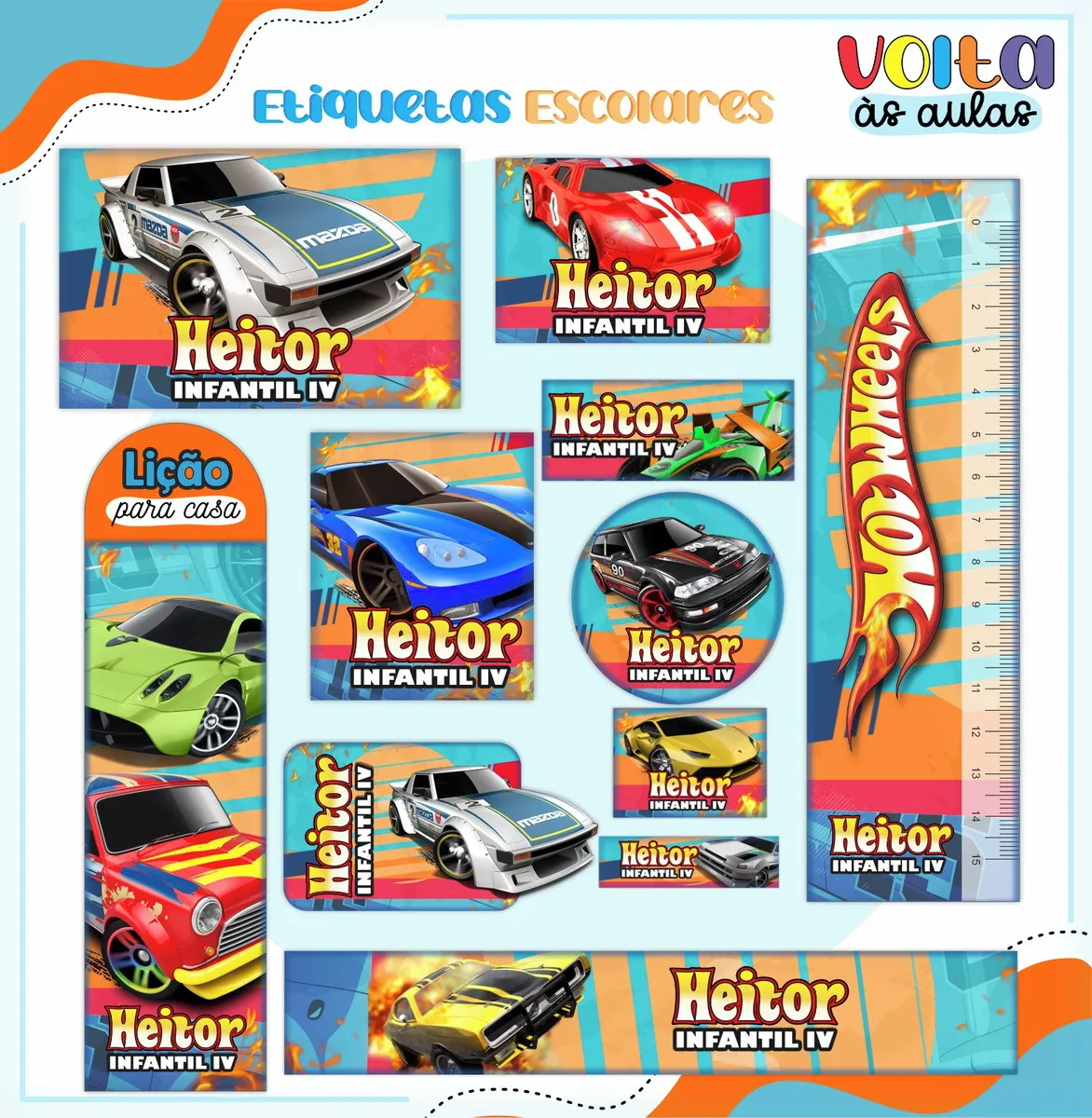✨ O Que Está Incluído no Produto? Arquivo Etiquetas Escolares Hot Wheels