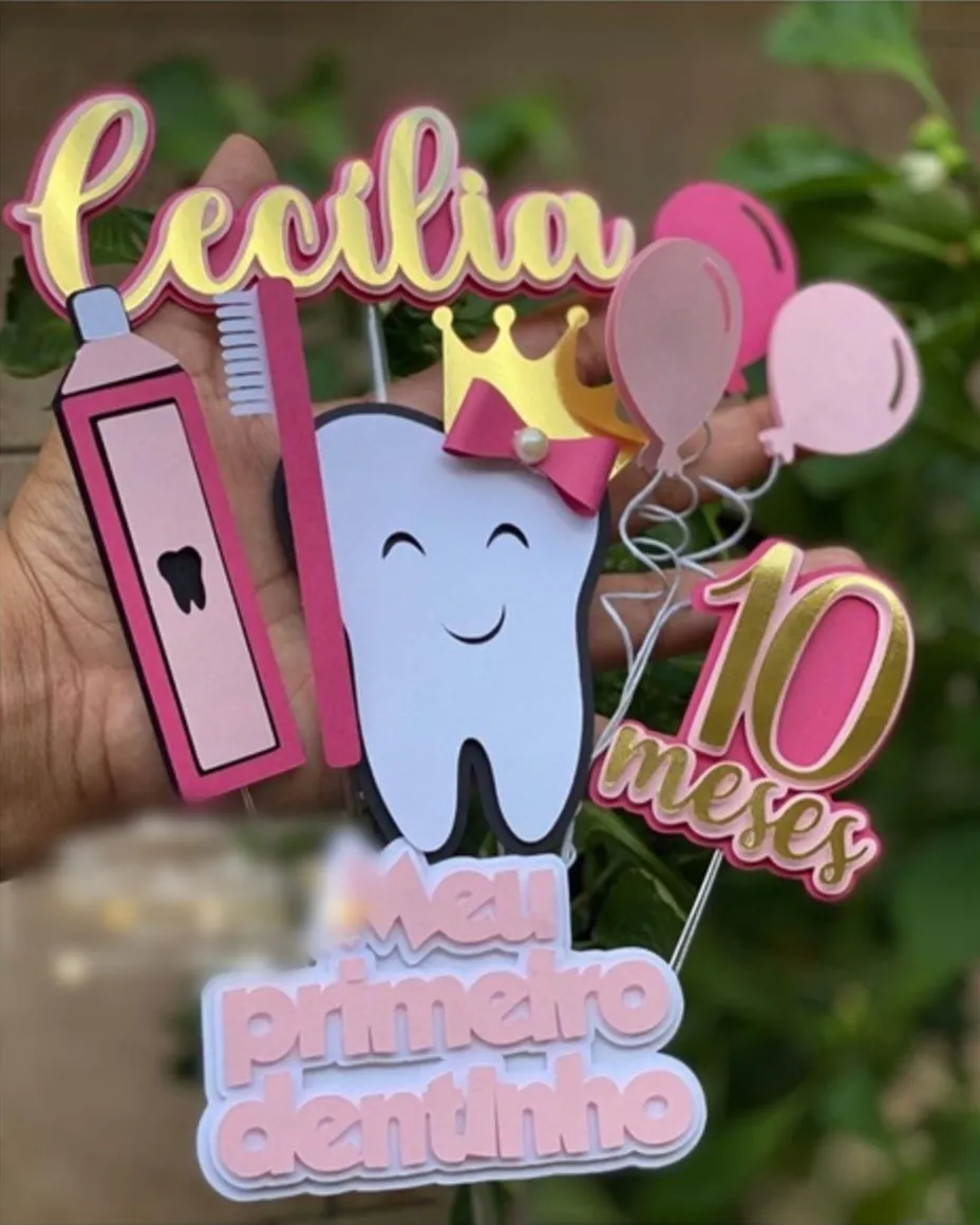 O tema Dentinho é perfeito para festas de bebê que celebram a chegada da primeira dentição ou datas especiais ligadas à infância. Com este topper, é possível criar composições harmoniosas combinando dentes, corações, estrelas ou detalhes infantis. Assim, você oferece um produto que agrega valor à festa, encanta familiares e convidados e torna cada detalhe inesquecível e fotogênico.