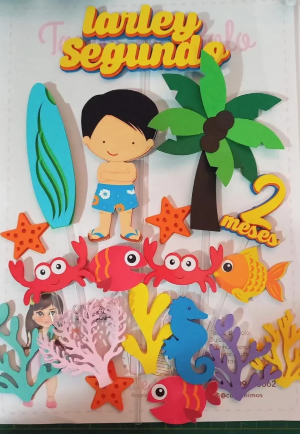 Tags: topo de bolo, decoração, festa, tema, Praia, aniversário, mesversario, confeitaria, arte digital, Silhouette Studio, corte manual, docinhos, painel decorativo, lembrancinhas, eventos escolares,