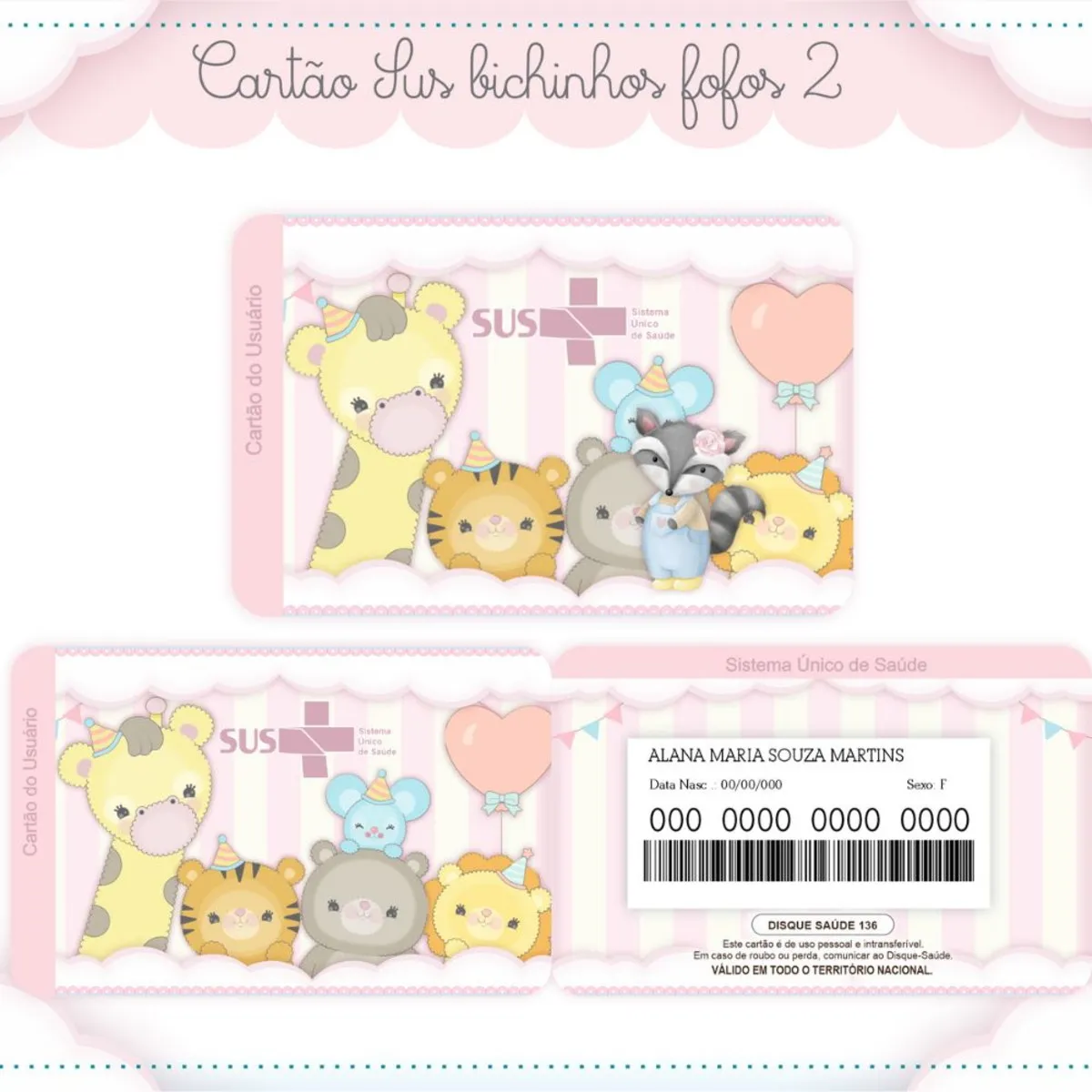 📦 Detalhes do Produto! Cartao do sus Personalizado Bichinhos Fofos