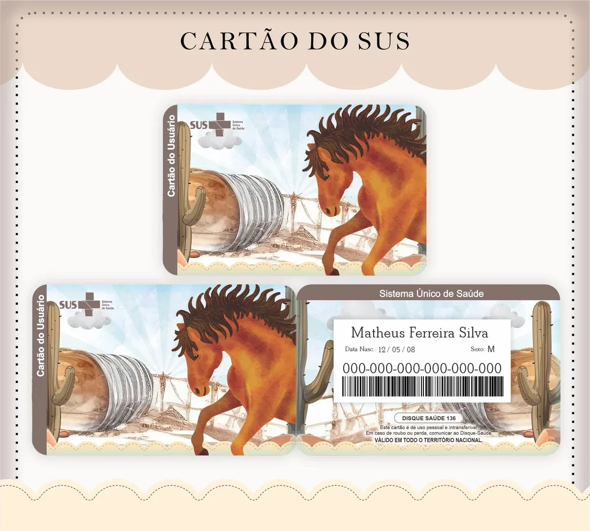 Cartão do SUS Personalizado Cavalo – Arquivo Digital em PNG e PDF