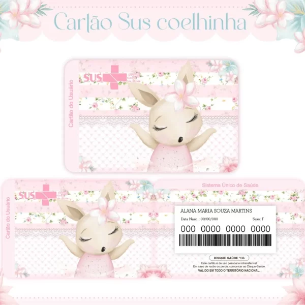 📦 Detalhes do Produto! Cartao do sus Personalizado Coelhinha Png e Pdf