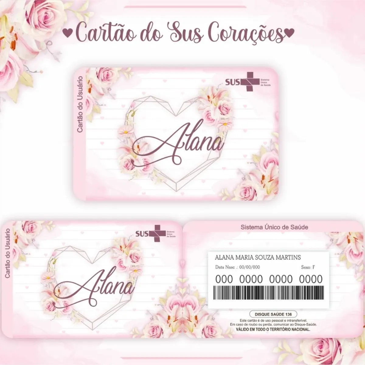 Adquira agora o seu Cartao do sus Personalizado Coração Png e Pdf digital pronto para impressão! Este é um modelo de alta qualidade, criado especialmente para quem busca praticidade no dia a dia. Ou seja, é ideal para quem precisa de uma personalizada, funcional e acessível do cartão do Sistema Único de Saúde (SUS),