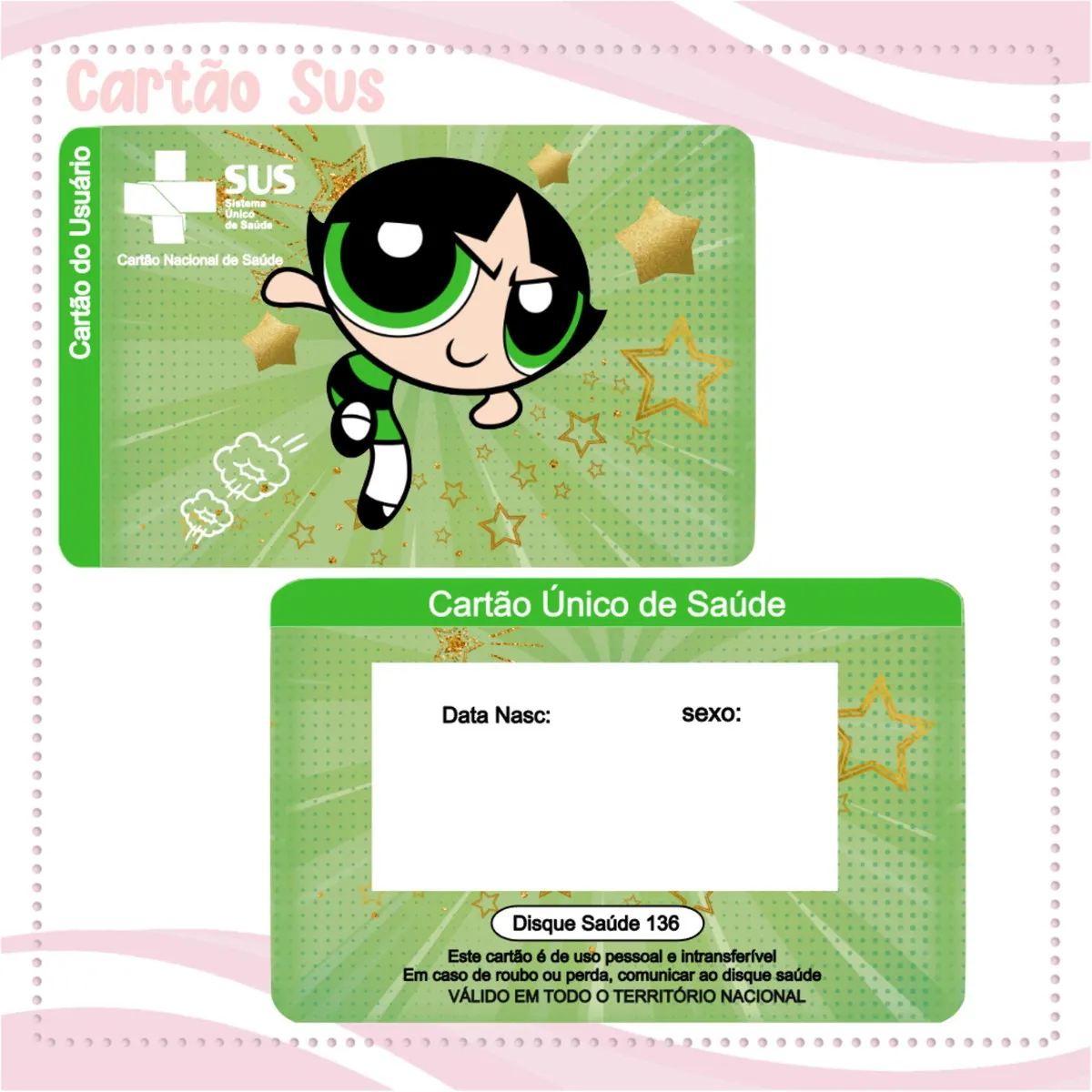 Adquira agora o seu Cartao do sus Personalizado Docinho Png e Pdf digital pronto para impressão! Este é um modelo de alta qualidade, criado especialmente para quem busca praticidade no dia a dia. Ou seja, é ideal para quem precisa de uma personalizada, funcional e acessível do cartão do Sistema Único de Saúde (SUS),