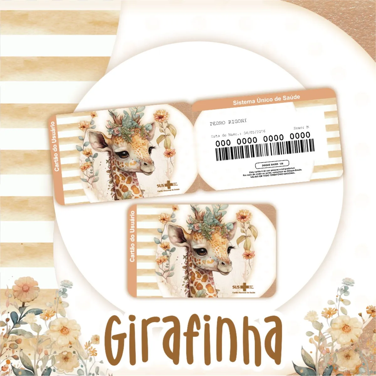 📦 Detalhes do Produto! Cartao do sus Personalizado Girafa Png