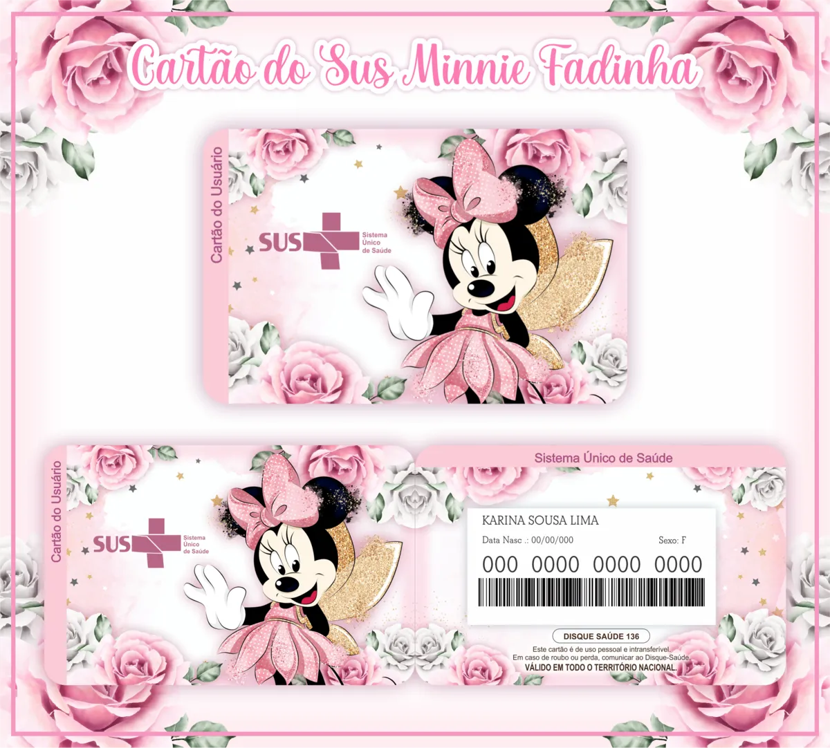 Adquira agora o seu Cartao do sus Personalizado Minnie Fadinha digital pronto para impressão! Este é um modelo de alta qualidade, criado especialmente para quem busca praticidade no dia a dia. Ou seja, é ideal para quem precisa de uma personalizada, funcional e acessível do cartão do Sistema Único de Saúde (SUS),
