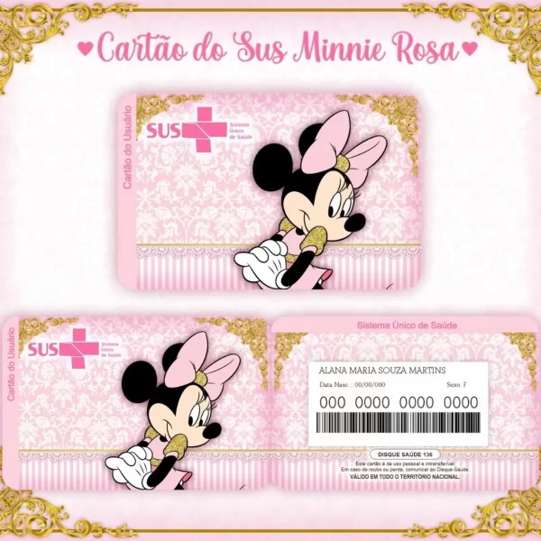 🧾 Por que adquirir este modelo? Cartao do sus Personalizado Minnie Rosa