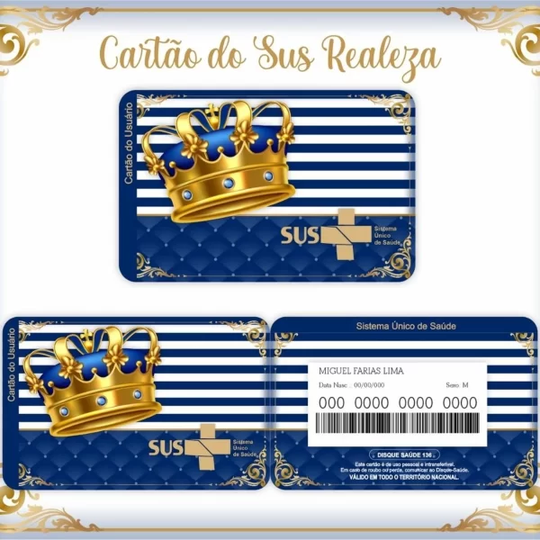 O cartão do SUS é fundamental para consultas médicas e atendimento hospitalar. Por isso, vale a pena investir em uma versão personalizada e diferenciada. Esse modelo no tema Realeza combina sofisticação com praticidade, podendo ser usado por toda a família.