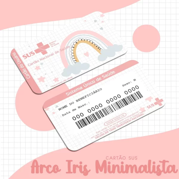 Cartão SUS Digital Arco-Íris Minimalista PNG e PDF – Delicadeza e Organização
