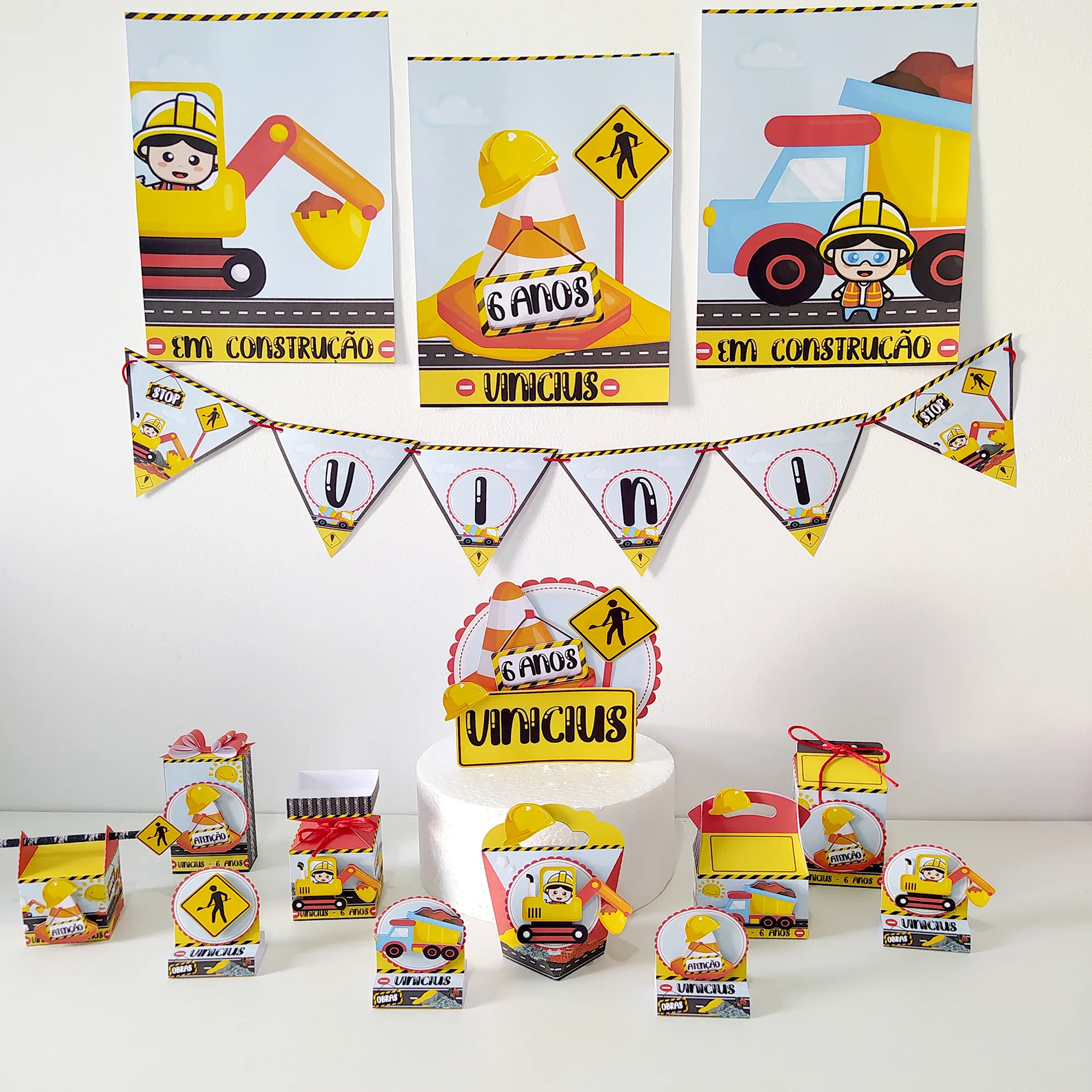 Tema Construção para convites, toppers, caixinhas e lembrancinhas.