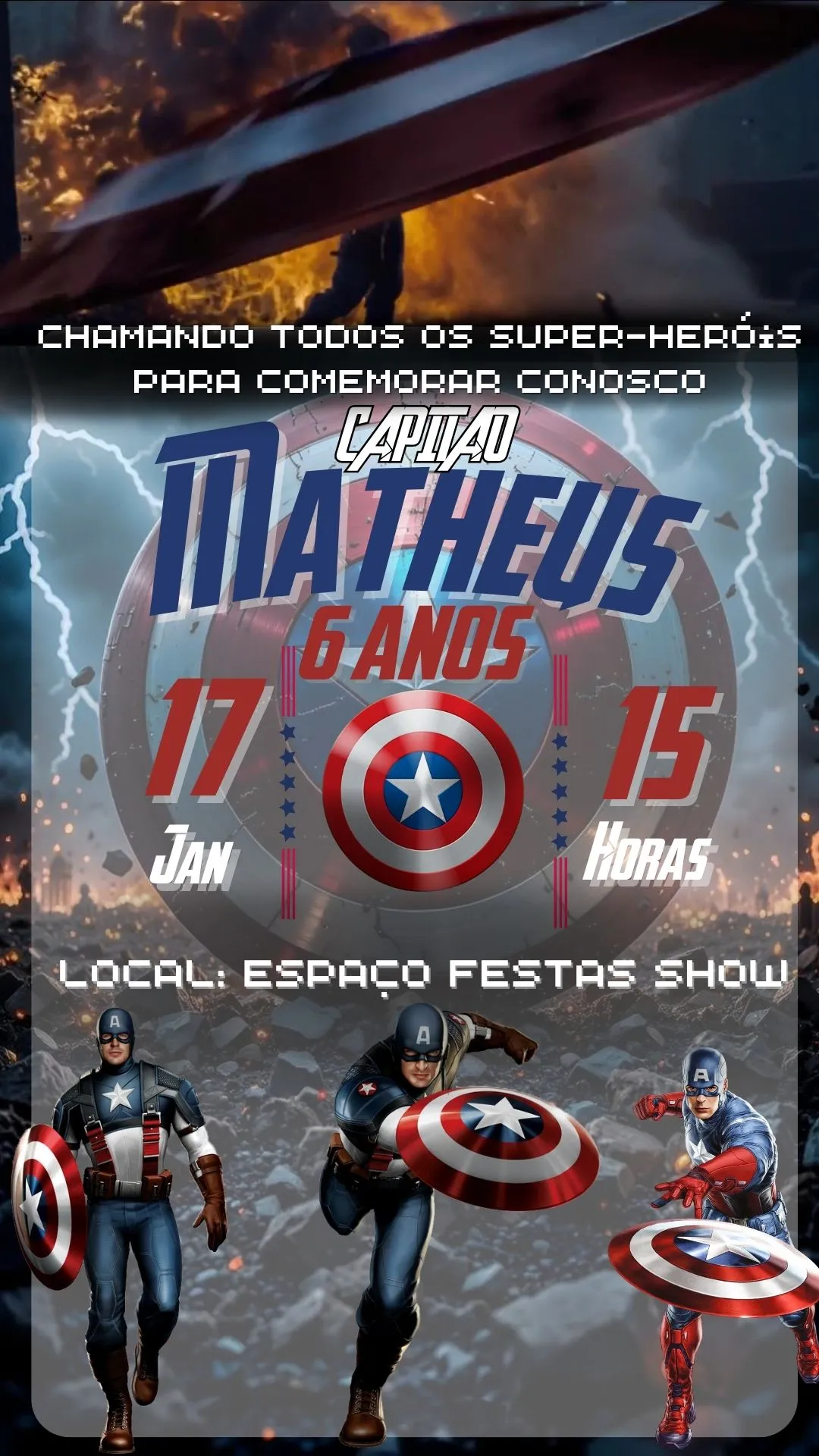 Convite Animado Capitão América em Vídeo MP4: convite digital personalizado para sua festa