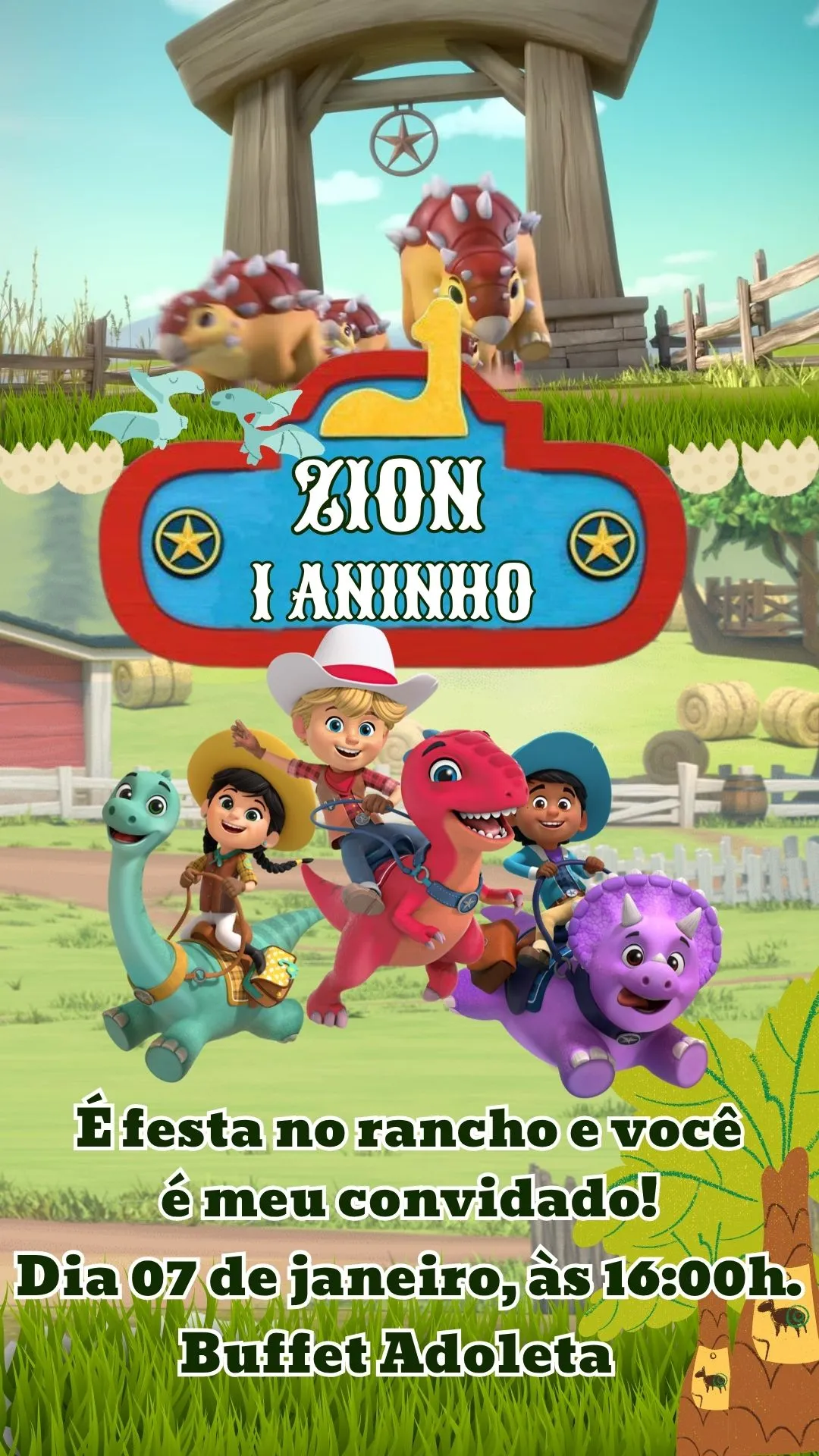 Convite Animado Fazendinha Dinossauro em Vídeo MP4: aventura e diversão para sua festa