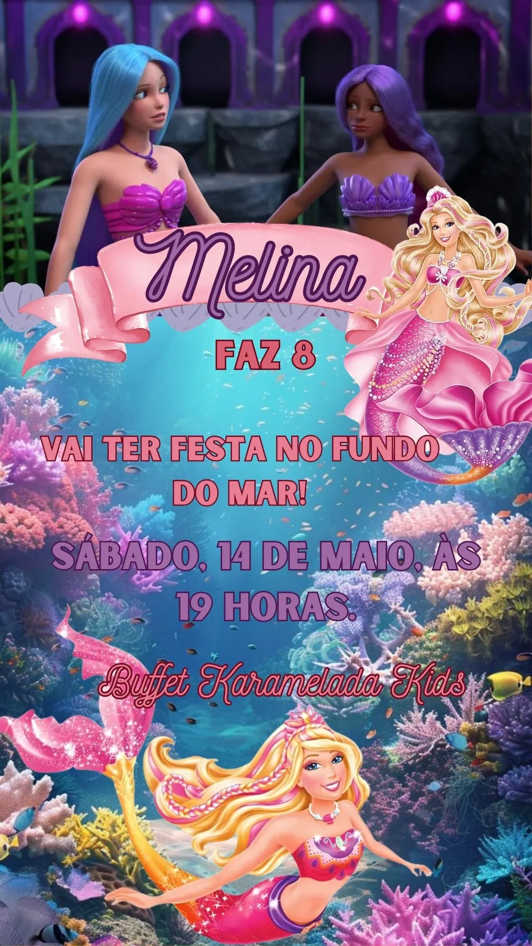 O convite animado princesa fundo do mar em vídeo MP4 não é apenas um meio de informar sobre a festa, mas também um presente visual que pode ser guardado como lembrança. Ele ajuda a criar expectativa e emoção, tornando a contagem regressiva para o grande dia ainda mais especial.
