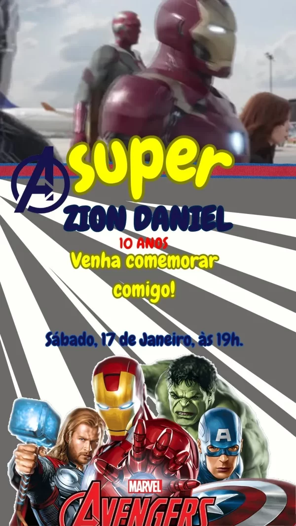 Vídeo convite animado no formato MP4 com tema The Avengers