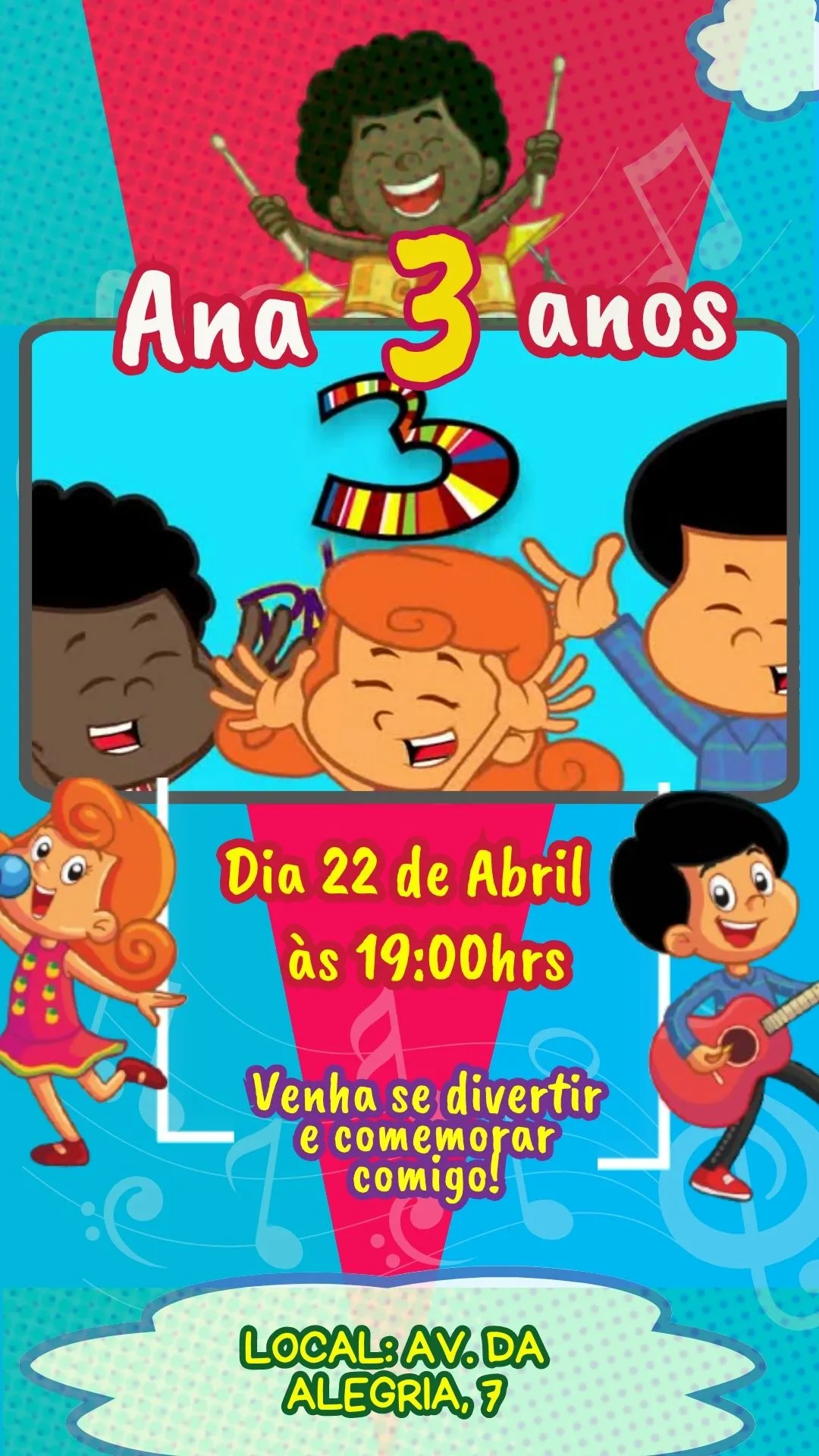 Com animações vibrantes, cores marcantes e trilha sonora alegre, o convite virtual cria um clima de expectativa e diversão antes mesmo do evento. Seus pequenos convidados já sentirão a energia e a magia da festa ao receberem este convite digital.