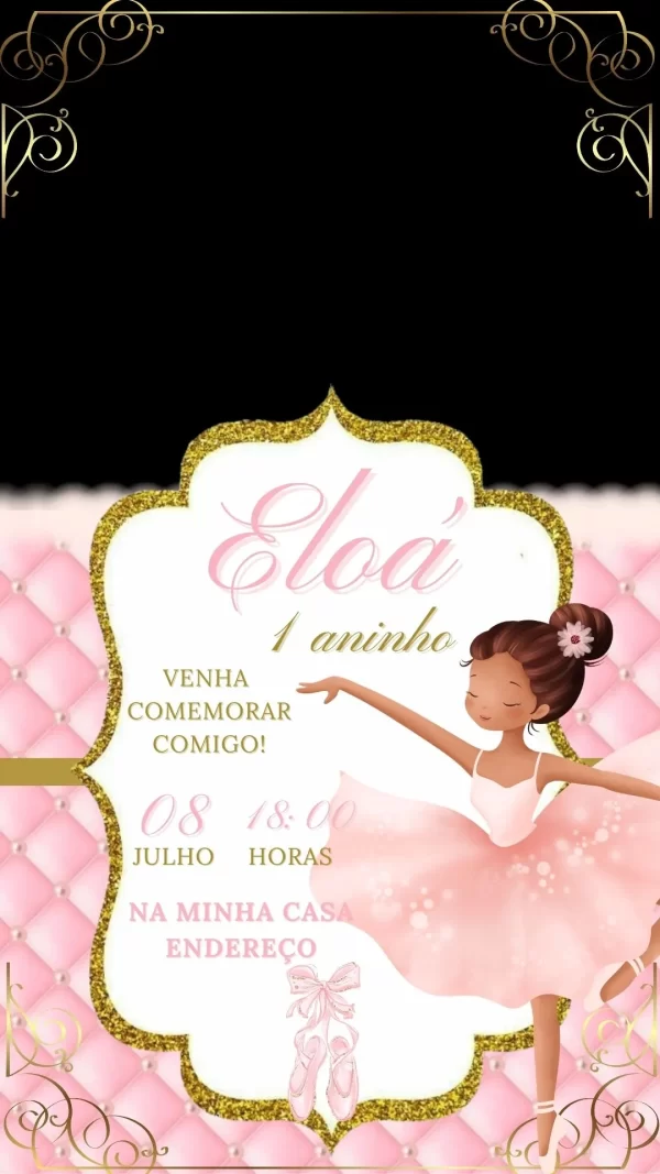 Convite Virtual Animado Bailarina – Encanto e Elegância para sua Festa