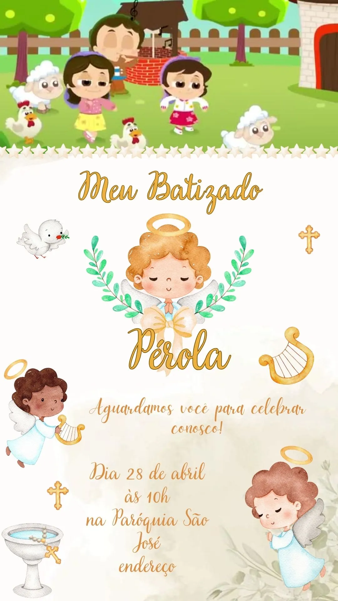 Personalização completa com os dados do batizado;