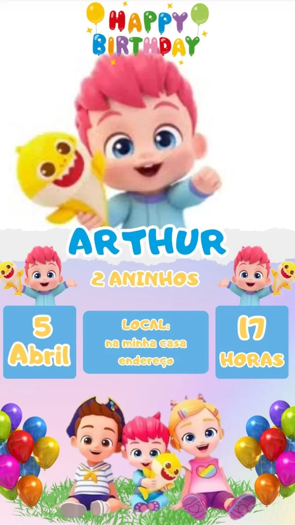 O Convite Virtual Animado BebêFinn é uma forma divertida, prática e encantadora de convidar amigos e familiares para sua comemoração especial. Inspirado no universo alegre e colorido do personagem, esse convite digital em vídeo traz efeitos animados, trilha sonora envolvente e design criativo que desperta sorrisos em adultos e crianças. Uma maneira moderna de transformar o convite em parte da festa, criando emoção desde o primeiro contato.