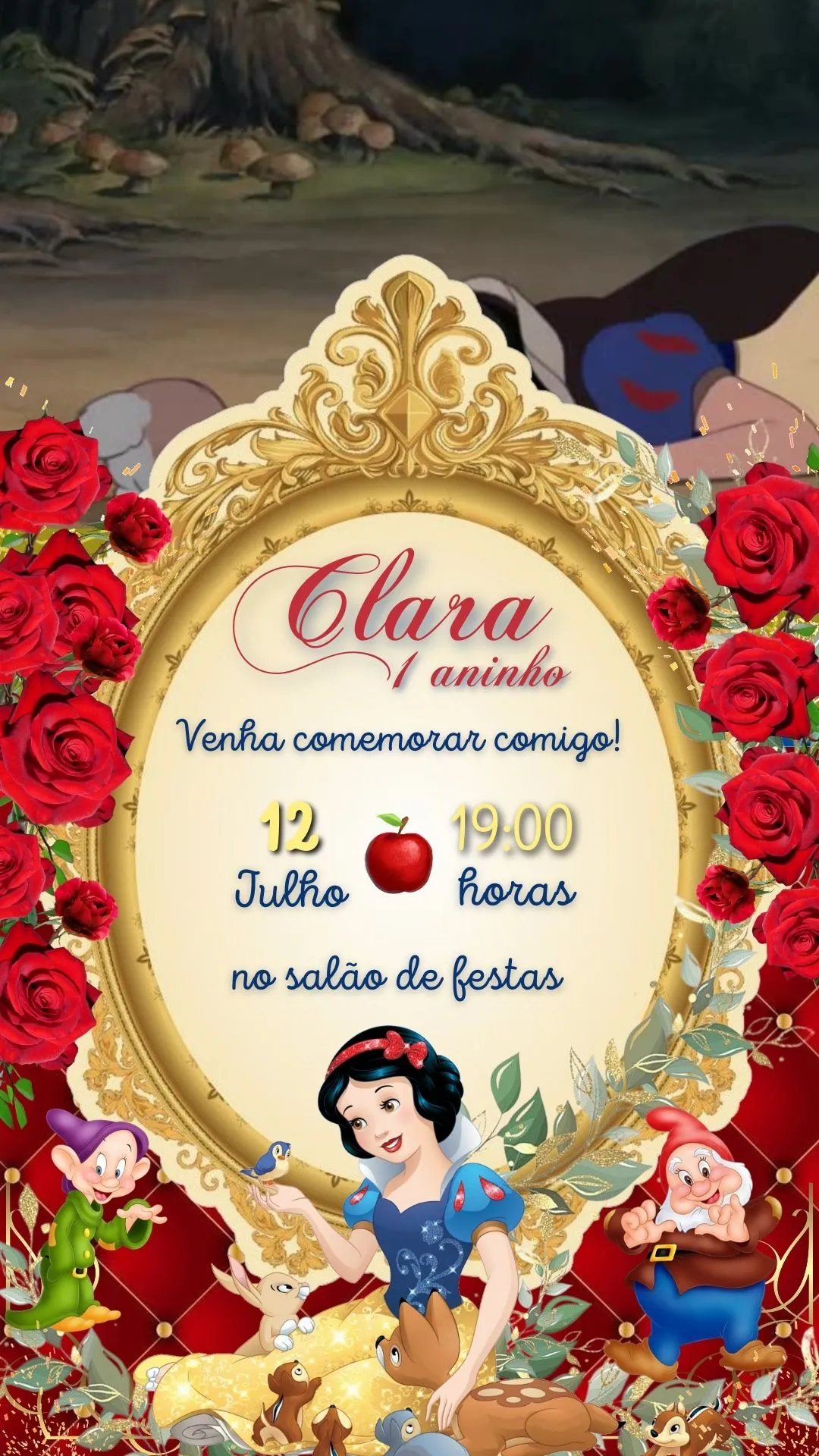 Convite Virtual Animado Branca de Neve: um toque de magia para sua festa