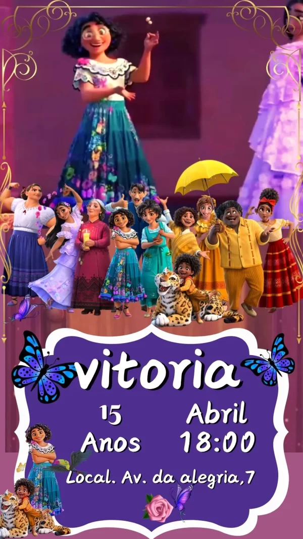 O Convite Virtual Animado Encanto vai muito além de informar — ele emociona e envolve. Criado com cuidado para manter a identidade visual do tema, o vídeo preserva as cores vivas e os detalhes da animação original, tornando-se um item que combina beleza e praticidade. Por ser digital, o convite pode ser enviado para qualquer lugar do mundo sem custos adicionais ou preocupação com prazos de entrega.