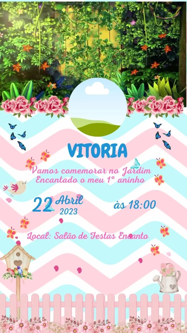 O Convite Virtual Animado Jardim Encantado em Vídeo MP4 é a escolha perfeita para transformar o anúncio da sua festa em um momento mágico e memorável. Com um cenário repleto de flores, borboletas, passarinhos e cores suaves, este convite encanta convidados de todas as idades, transmitindo toda a delicadeza e o clima especial do seu evento. Ideal para aniversários, chás de bebê, batizados e festas infantis, ele cria desde o primeiro momento uma atmosfera de encanto e alegria.