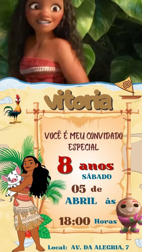 Vídeo convite animado no formato MP4 com tema Moana