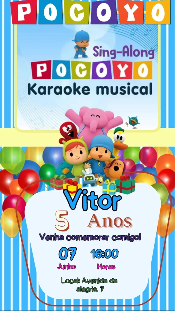 Convite Virtual Animado Tema Pocoyo: alegria e fofura para sua comemoração