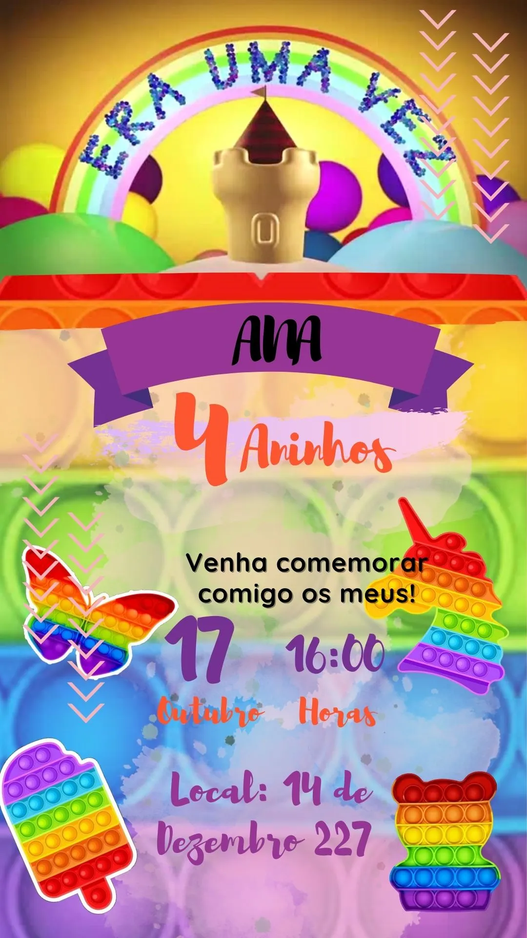 Convite Virtual Animado Tema Pop It: diversão e cores para sua festa
