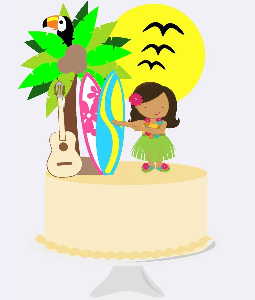 🌺 Decoração Topo de Bolo Festa Havaiana Studio 🌴