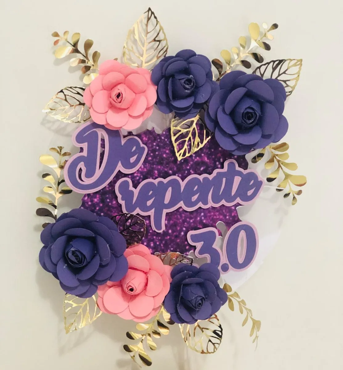 💜 Decoração Topo de Bolo Flores Roxo Studio 🌸