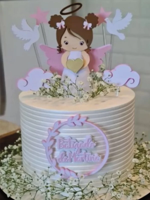 🎂 Com a Decoração Topper Batizado Anjinha Studio, cada detalhe do seu bolo transmite amor e delicadeza, tornando o batizado do seu pequeno memorável e encantador. 👼✨