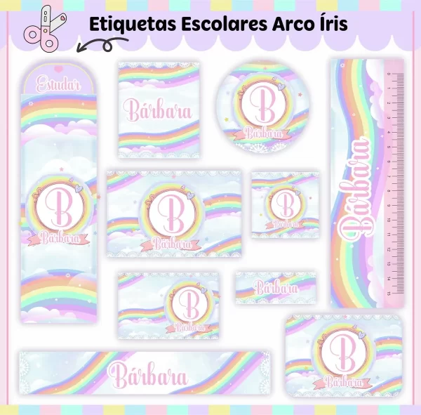 Se você está procurando uma maneira prática, econômica e charmosa de identificar o material escolar das crianças, a nossa Etiqueta Escolar Arco Iris Para Imprimir é exatamente o que você precisa. Afinal, com um design exclusivo e arquivos digitais de alta qualidade, você pode imprimir quando quiser e manter tudo organizado com facilidade.