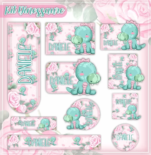 📌 Conclusão Etiqueta Escolar Dinossauro Menina
