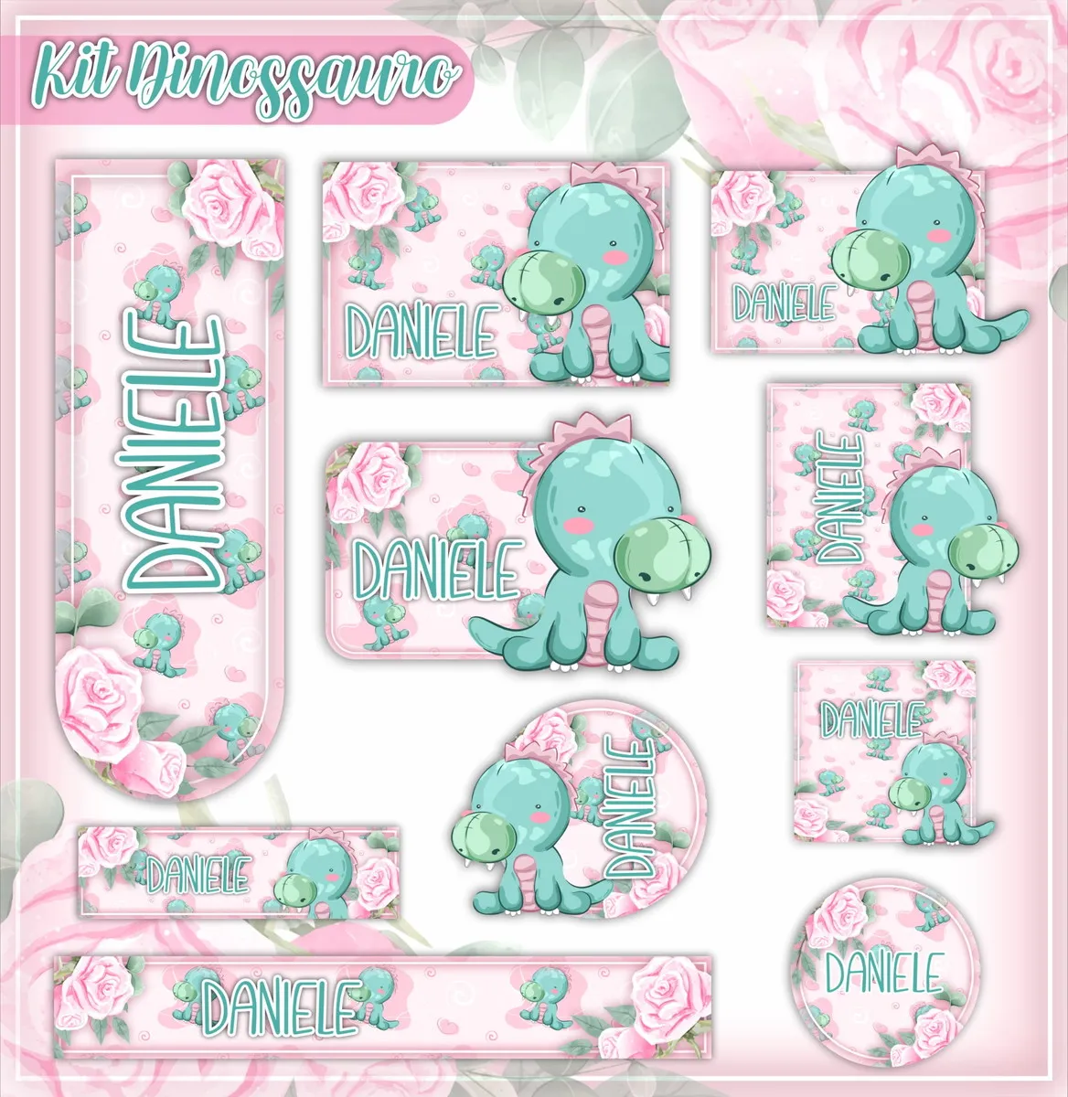 ✨ O Que Está Incluído no Produto? Etiqueta Escolar Dinossauro Menina