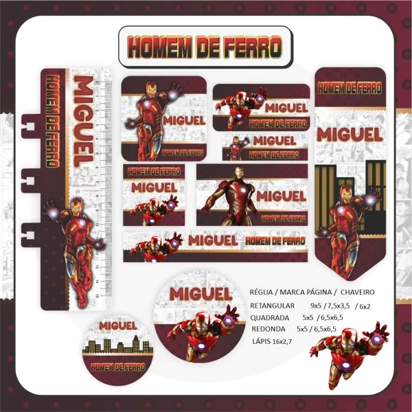✨ O Que Está Incluído no Produto? Etiqueta Escolar do Homem de Ferro