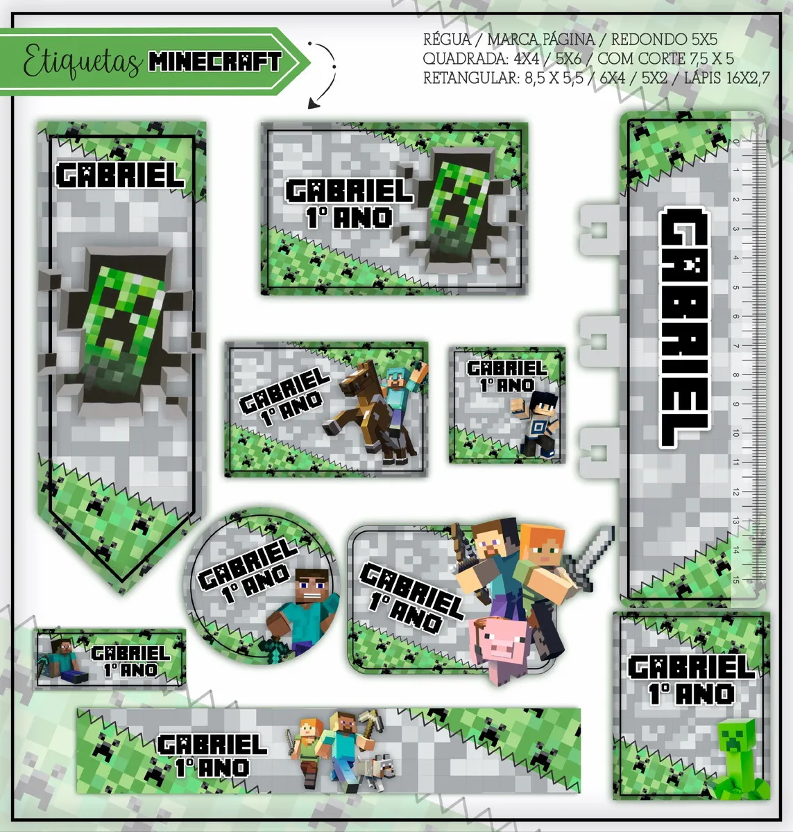 ✨ O Que Está Incluído no Produto? Etiqueta Escolar do Minecraft