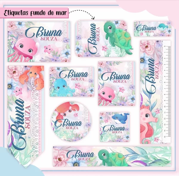 ✨ O Que Está Incluído no Produto? Etiqueta Escolar Fundo Do Mar Menina