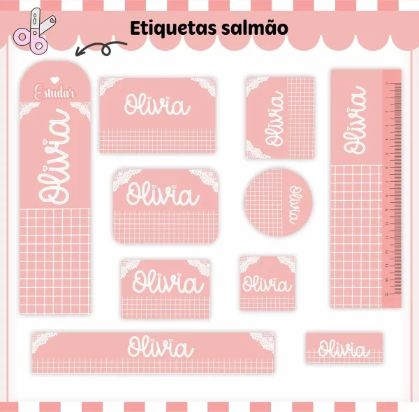 ✅ O que está incluso no kit Etiqueta Escolar Neutro Salmão