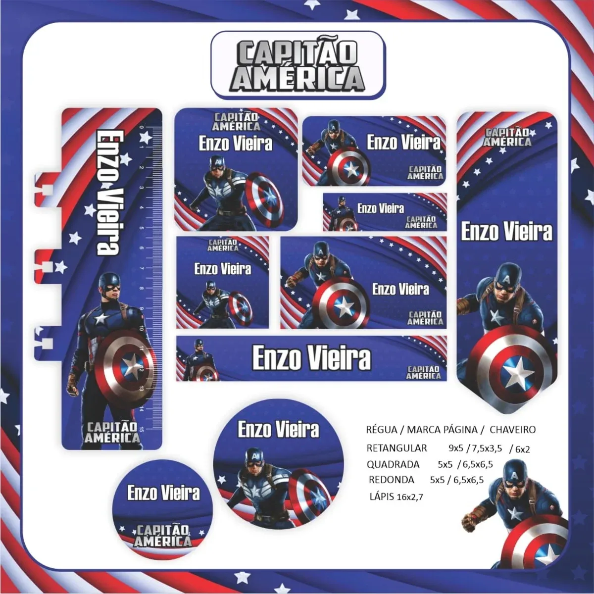 ✨ O Que Está Incluído no Produto? Etiqueta Escolar Personalizada Capitao America