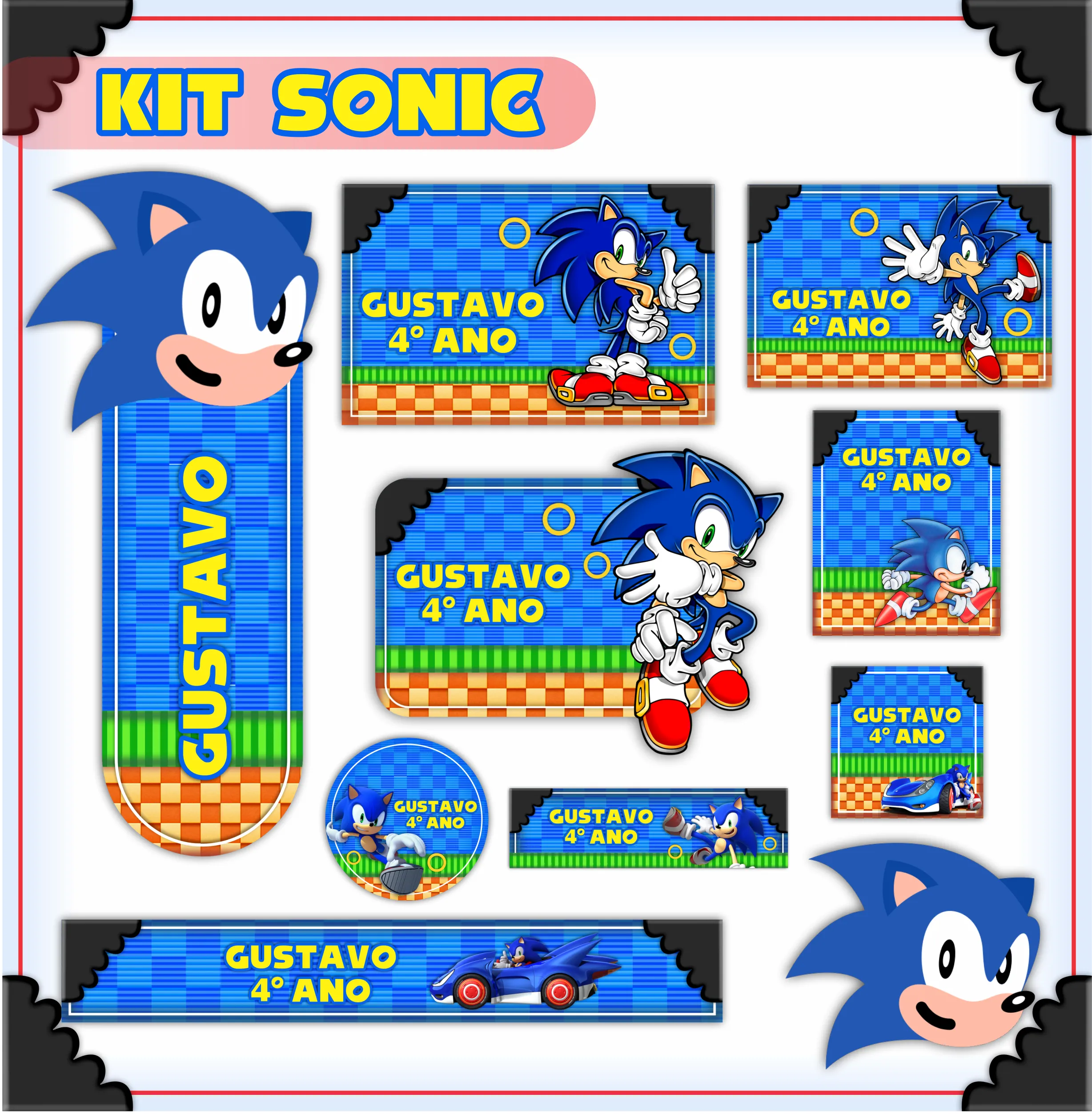 ✨ O Que Está Incluído no Produto? Etiqueta Escolar Personalizada Sonic