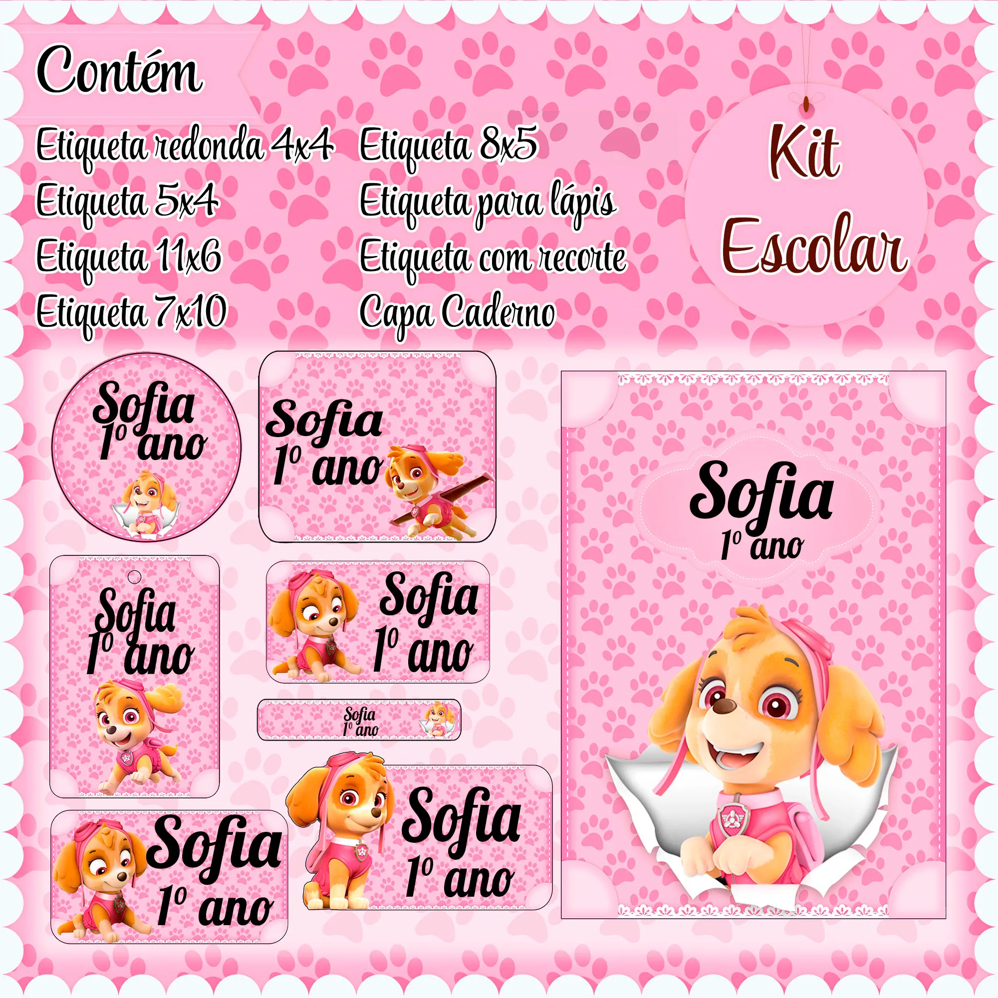 ✨ O Que Está Incluído no Produto? Etiqueta Escolar Skye Patrulha Canina