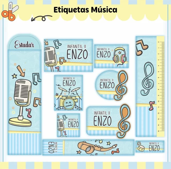 A Etiqueta Escolar Tema Música é perfeita para unir organização, praticidade e um toque musical nos materiais escolares. Com ilustrações de notas, instrumentos e símbolos musicais, esse modelo deixa cadernos, estojos, livros e mochilas únicos, transmitindo criatividade e estilo para crianças e adolescentes.